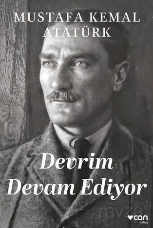 Devrim Devam Ediyor, Mustafa Kemal Atatürk'ün 1923'te gerçekleştirdiği 35 günlük yurt gezisi kapsamında gittiği İzmit'te önce basının ileri gelenleriyle, ardından halktan kişilerle yaptığı iki toplantıdaki konuşmalarından oluşuyor ve Atatürk'ün bir asker olarak ülkeyi işgalden kurtardıktan sonra neden kenara çekilmediğini, gücünü ve meşruiyetini toplumun her alandaki yapılanmasını şekillendirmek ve yönetmek için kullanacağını gösteren bir belge niteliği taşıyor.