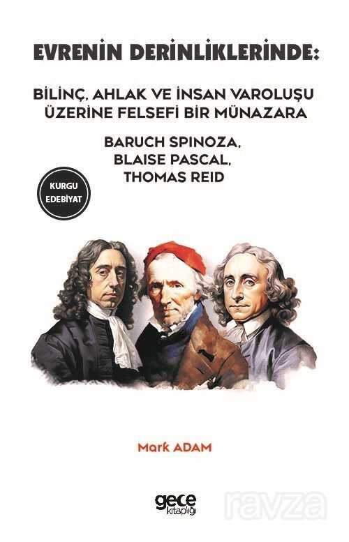 Bu tartışma kitabı üç büyük filozof Baruch Spinoza Blaise Pascal ve Thomas Reid'in farklı düşüncelerini ve perspektiflerini ele alarak evren bilinç ve ahlak gibi derin konuları sıcak ve anlaşılır bir şekilde tartışma amacını taşımaktadır. Bu sayfalarda bu üç filozofun düşünceleri aracılığıyla evrenin bilincin ve ahlaki değerlerin doğasını ve insan varoluşunu daha iyi anlamaya çalışacağız.